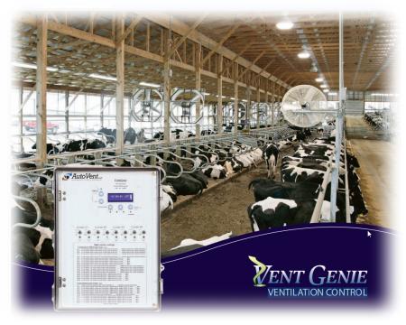 Fast forward to 2012, and Kevin has founded a company, AutoVent LLC. AutoVent make a range of products concerned with cow barn climate control. The flagship product, VentGenie, has been installed in barns right across the dairy farming states of northern USA. VentGenie integrates measurements of inside and outside temperature, humidity, wind speed and direction, and precipitation. Using this data and sophisticated algorithms designed by Kevin from extensive research into cow comfort versus milk yields, the system performs optimal control of the barn curtains, fans and sprinklers. VentGenie can fine-control up to 24 curtain sections, 50 fans, and 6 sprinklers. Once set up is essentially fully automatic year-round.