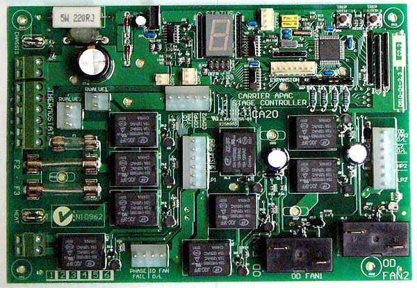 Carrier-Apac, in Perth Western Australia, was a subsidiary of a $35B world-wide air conditioning conglomerate. The Apac strong suit was large, multi-stage reverse cycle “heat pump” units, of the type that get hoisted onto the roofs of factories and office buildings using a crane or helicopter. Apac were controlling their units with a mash-up of single stage controller boards, made by a sister company, plus sundry relays and timers. It was basically a mess. It was costing them dearly in skilled labour to wire it all up and test it, and it didn’t provide any of the flexibility demanded of modern systems.