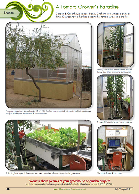 Denny’s greenhouse has featured in Garden & Greenhouse magazine, as illustated here (reproduced with permission of the magazine)