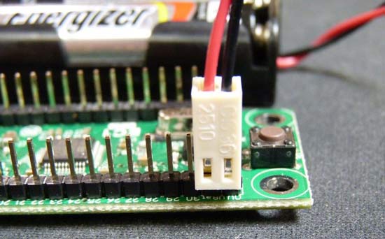 - Holder for two AA or AAA batteries with 2-pin female connector. Example