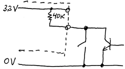 The sketch shows two possible input sources, a switch and an NPN transistor. The 40KΩ resistor is inside the processor chip. |