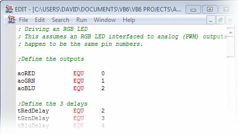 The full program is listed below, with extensive annotations. To show/hide the program listing click here. There are pop-ups for each major functional block of code, and clickable links on individual instructions that take you to the formal descriptions of the instructions.