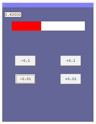 Example. The following program will produce the result shown below. The bar is drawn with a red foreground and white background. The buttons can be used to change the bar length: