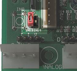 On the board they are labeled IN13 and IN14. The jumpers go in the direction illustrated at IN13.