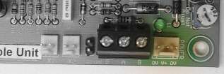 Connect power to the 3-pin connector depicted above. The positive terminal is in the middle. There are 2 ground pins simply because we used a 3-pin connector to make it unique.