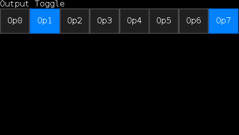 Ok, let’s go all out and create a button for each output (both the HMI430 and HMI700 have 8 digital I/O lines built-in). I’m lazy, so instead of typing 8 ButtonEvent2 instructions, I’ll create the 8 buttons in a loop. Here’s how the screen looks (BTW, screen shots are easy, just drag ‘n drop the sshotNNN.png file from the Computer\HMI430\Internal Storage directory):