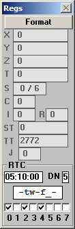 The bottom part of the SPLat/PC register display shown above represents the RTC. The items are, left to right, top to bottom: