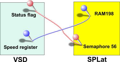 One of the reasons that ModBus is popular is that it is capable of hiding a lot of the gory details from the user. With ModBus you don’t have to worry much about the details of how data gets transferred between two “boxes”. Instead you define a mapping between items in one box and the corresponding items in another box. For example, in the above diagram RAM location 198 in the SPLat has been visualized as mapped to the speed control register in the VSD (Variable Speed Drive). Once ModBus is configured the effect would be that whenever the program in the SPLat changes the contents of RAM location 198, the speed of the motor driven by the VSD will change accordingly. Similarly, if the status flag in the VSD gets set (maybe denoting a problem), semaphore 56 in the SPLat will reflect the change. All this happens without the programmer needing to understand the messages that flow between the two boxes, although you must specify the data flow.
