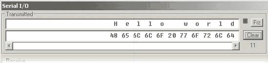 You can get the serial simulation window by the menu selection Window->Serial. In its raw state it looks like this: